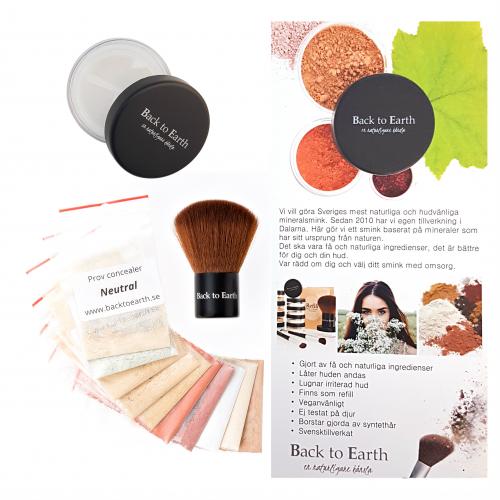 Innehåller en bas av Back to Earth produkter och finns för 3 olika hudtoner (ljus, mellan och mörk). Innehåller 12 prover, 1 borste och 1 burk. Pris 249 kr.